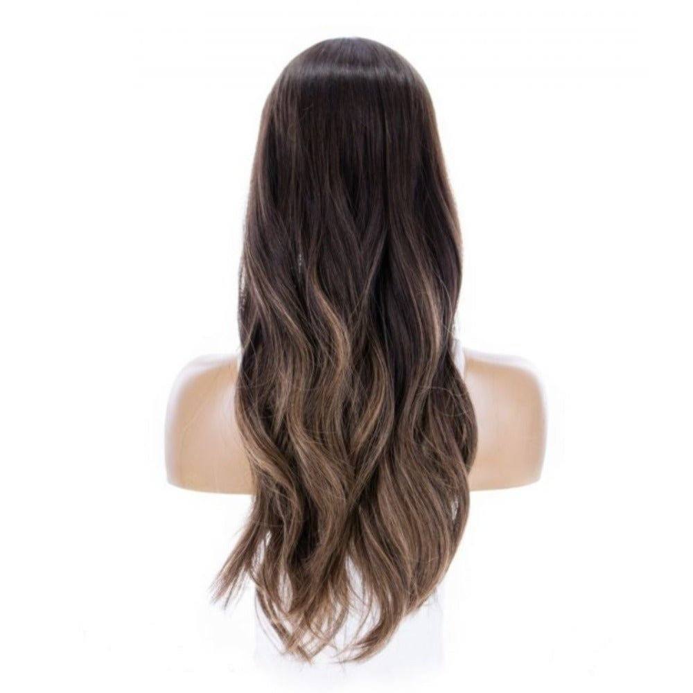 24" Divine Lace Top Topper Layered Dark Brown Balayage Premium Processed Remy Human Hair