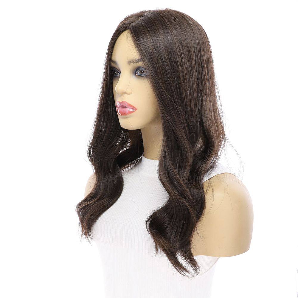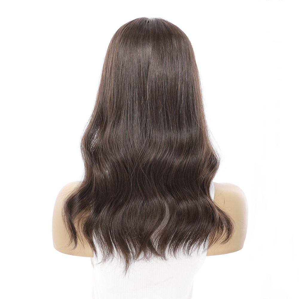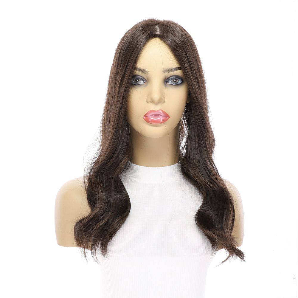 18" Emerald Silk Top Wiglet Topper Layered Dark Brown Premium Processed Remy Human Hair