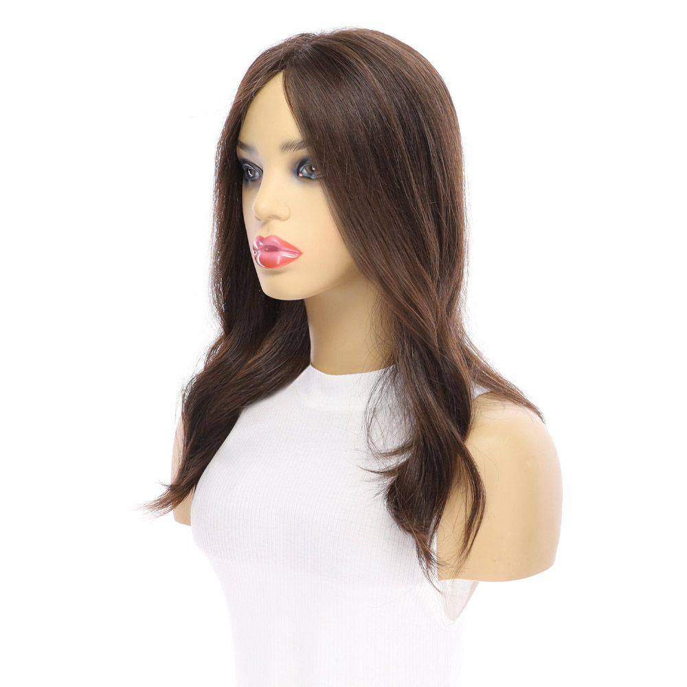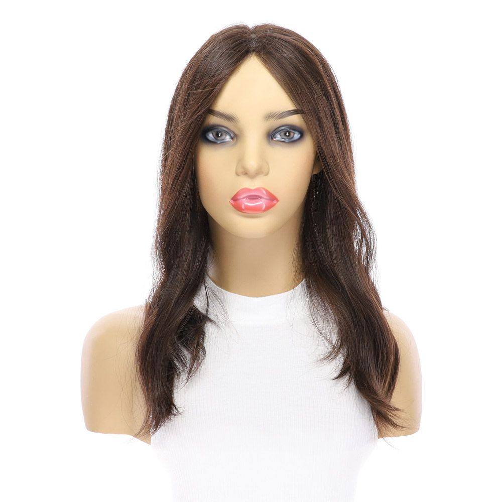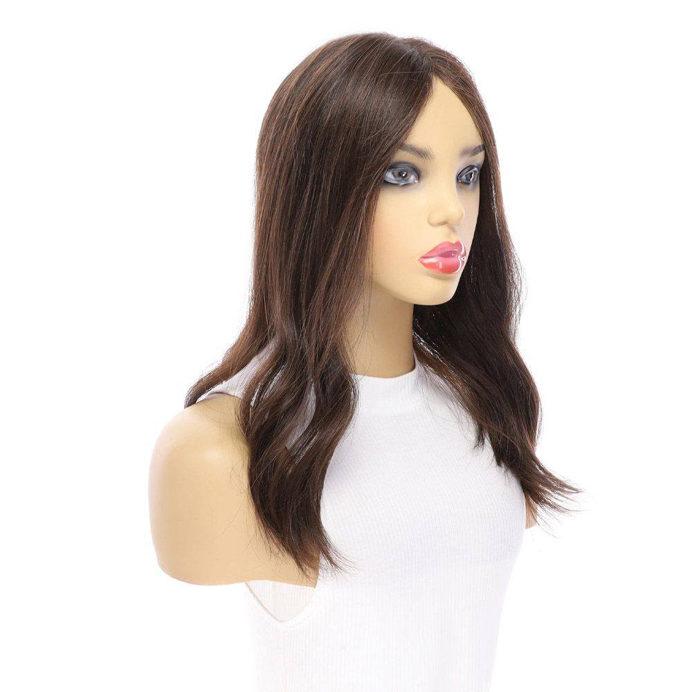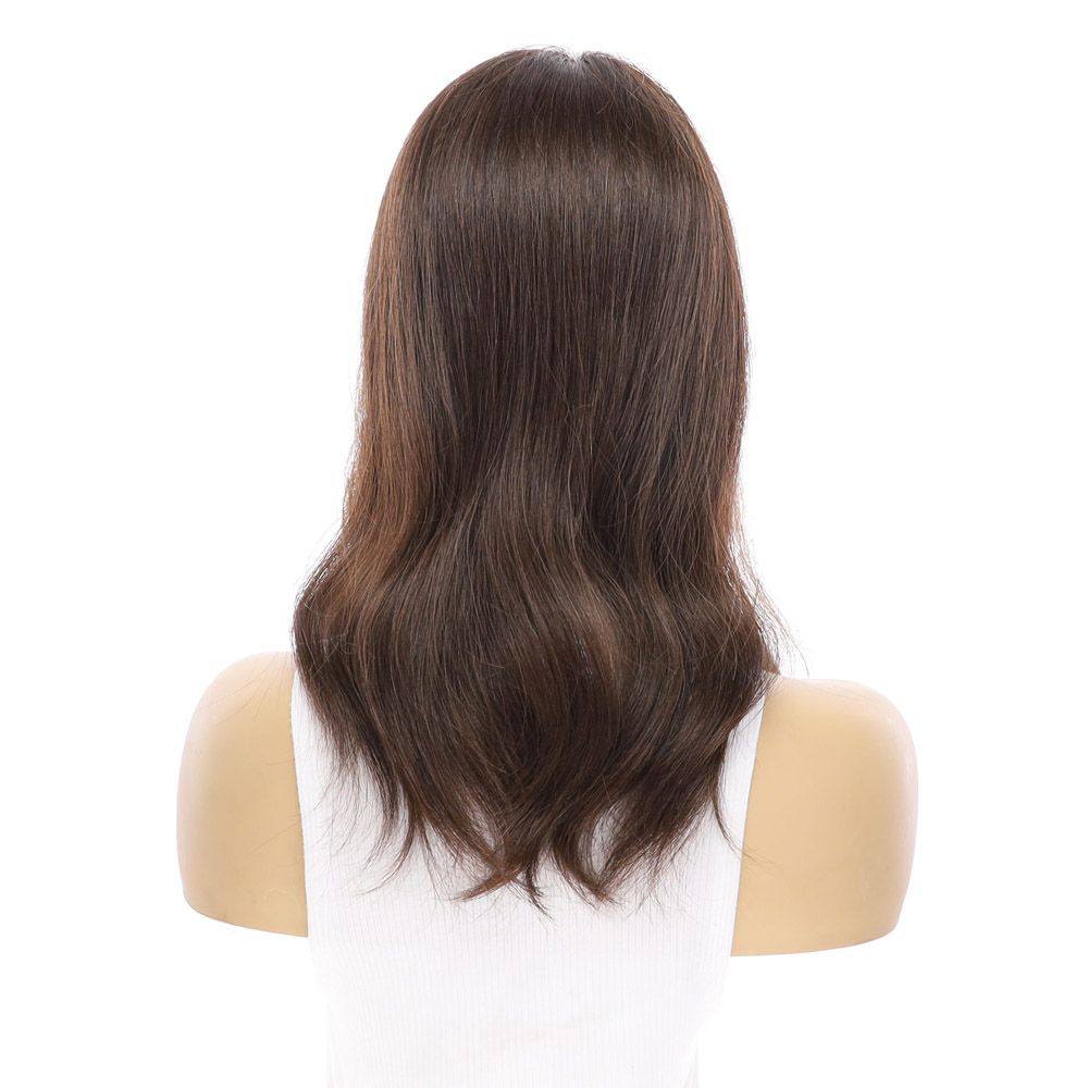 18" Topaz Lace Top Wiglet Topper Precut Layered Dark Brown Premium Processed Remy Human Hair
