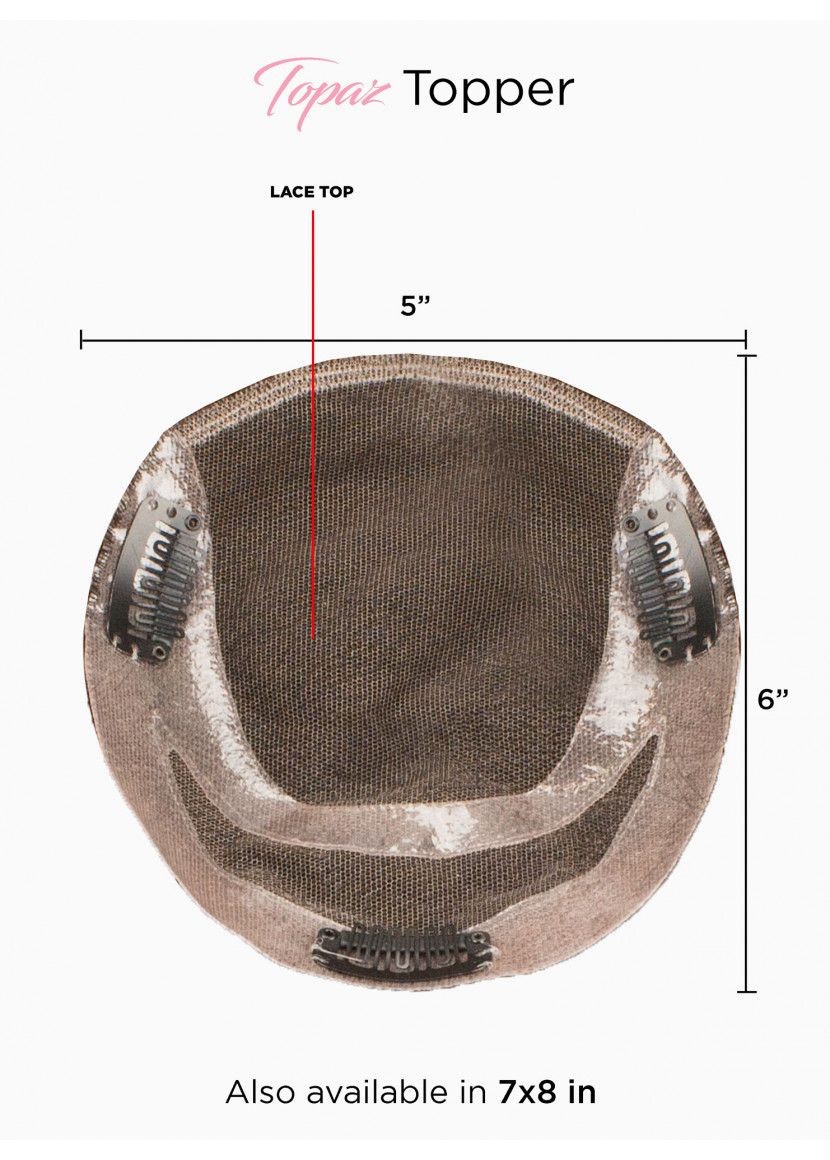 The Topaz Lace Topper is a medium/low density premium processed human hair topper that is lightweight.