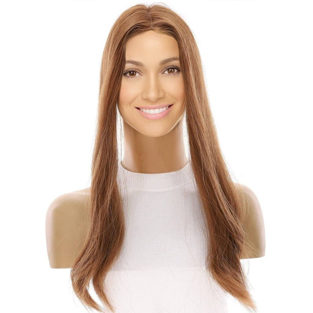 The 20" Diamond Topper is a full density premium processed human hair topper.