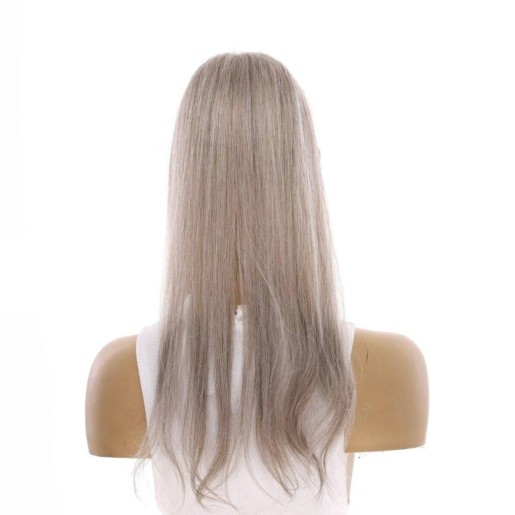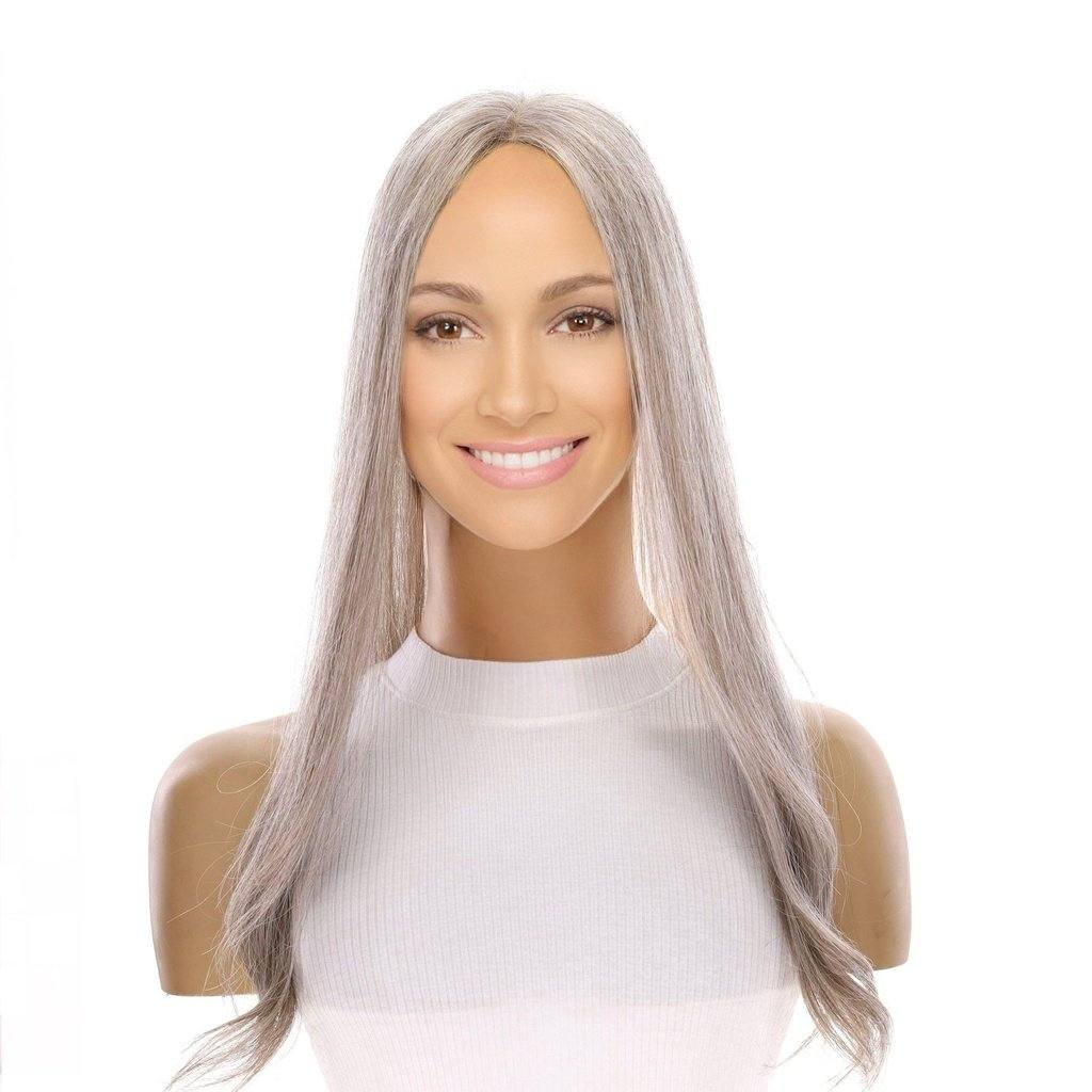 20" Diamond Mono Top Wiglet Topper Champagne Grey Premium Processed Remy Human Hair