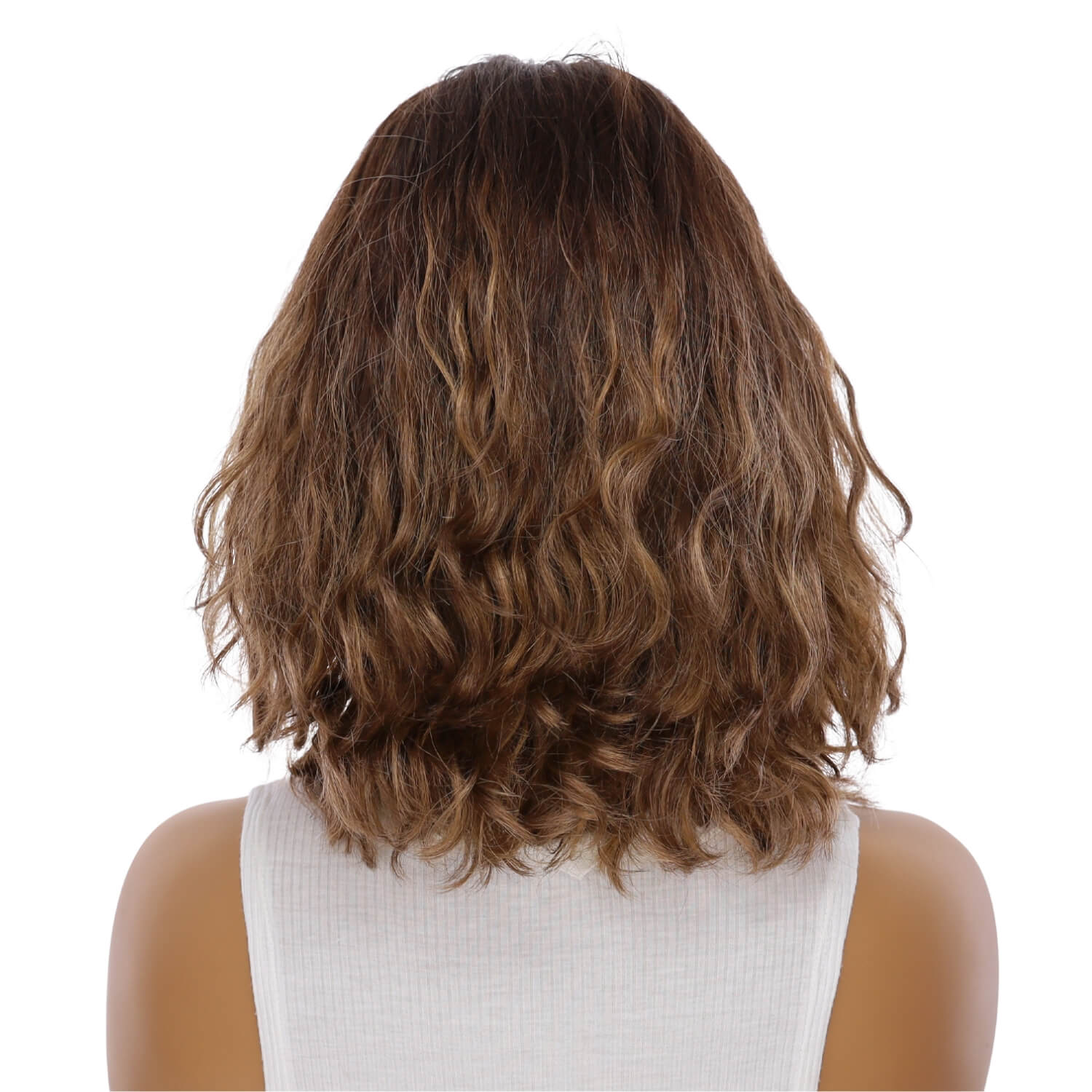 13" Victoria Silk Top Wig Medium Brown Balayage Wavy