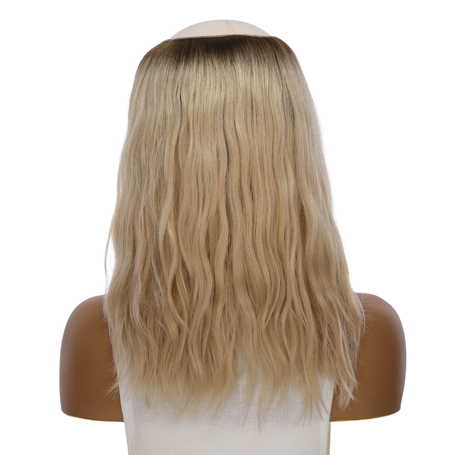 16" Hatfall Precut Beige Blonde Wavy Premium Processed Remy Human Hair Wig