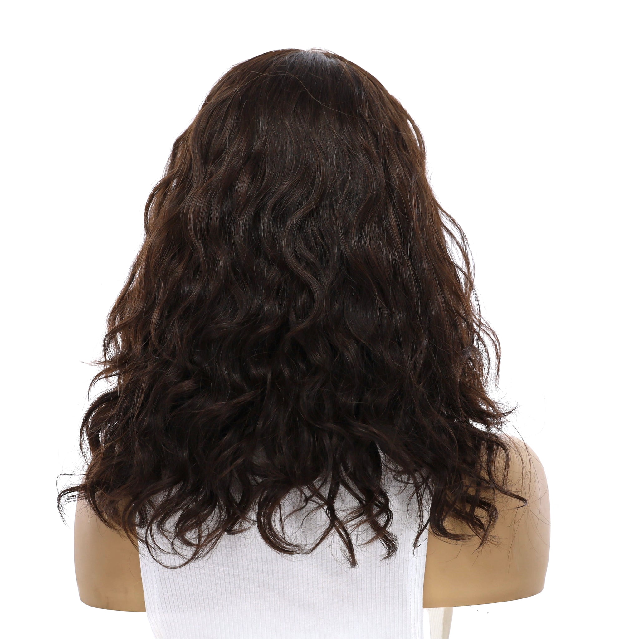 16" Ponytail Precut Silk Part Wig Layered Dark Brown Wavy Premium Processed Remy Human Hair