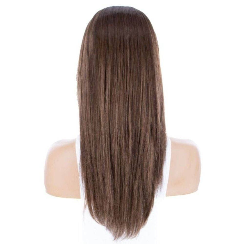 22" Ponytail Precut Silk Part Wig Layered Medium Brown Babylight Premium Processed Remy Human Hair