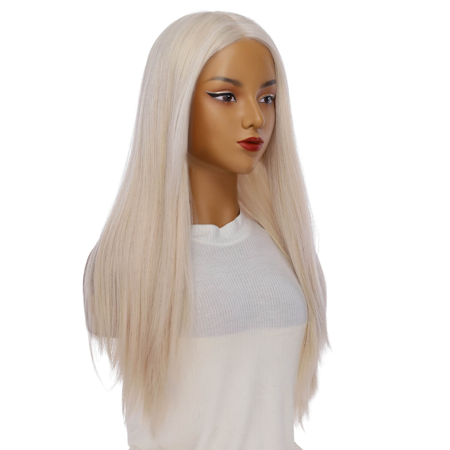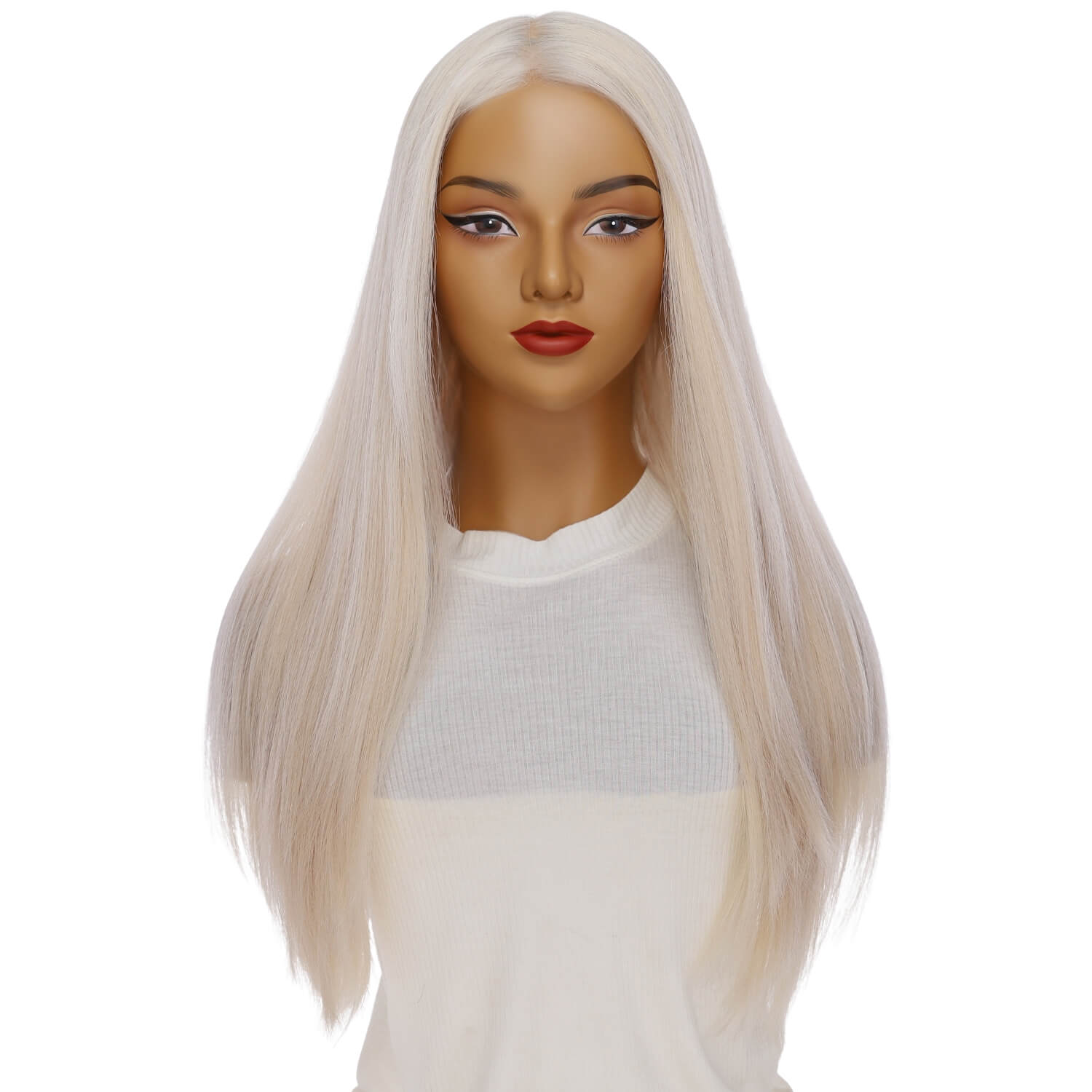 26" Amber Precut Silk Top Layered Ice Blonde Premium Processed Remy Human Hair Wig