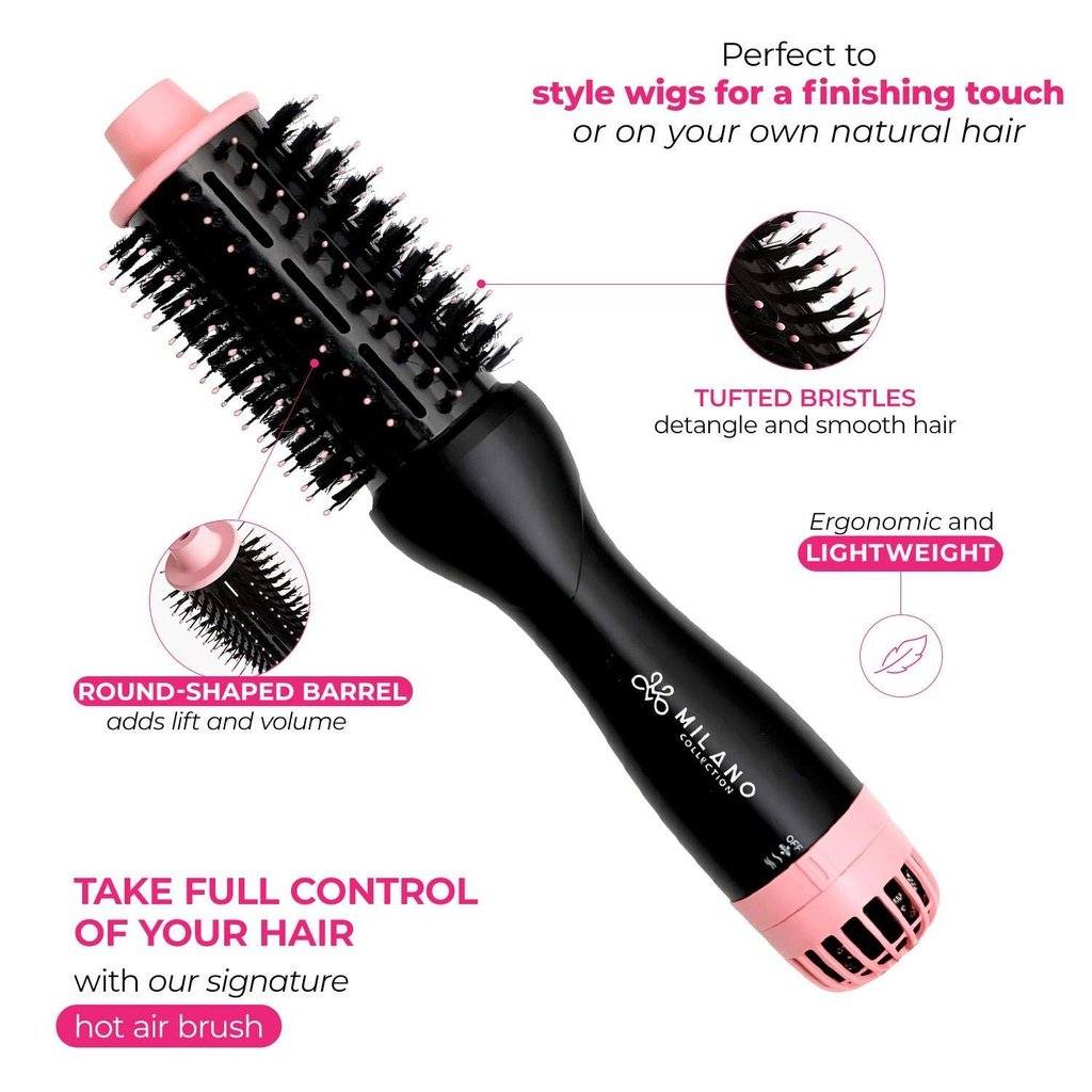Get salon-fresh hair right from home with the Milano Volumizing & Smoothing Hot Air Brush! The one essential tool you need for styling your natural hair, wigs, toppers, or extensions - short or long! Easy to use and versatile - perfect for freshening up your look, or for a complete blow dried and styled effect. Take control of your styling routine with three temperature and speed settings for maximum styling versatility. For anyone that’s ever been challenged with styling their hair or wigs, but wants that salon look, this is the ideal tool for you. Powerful but controlled heat settings to avoid overheating and to keep you in control at all times.