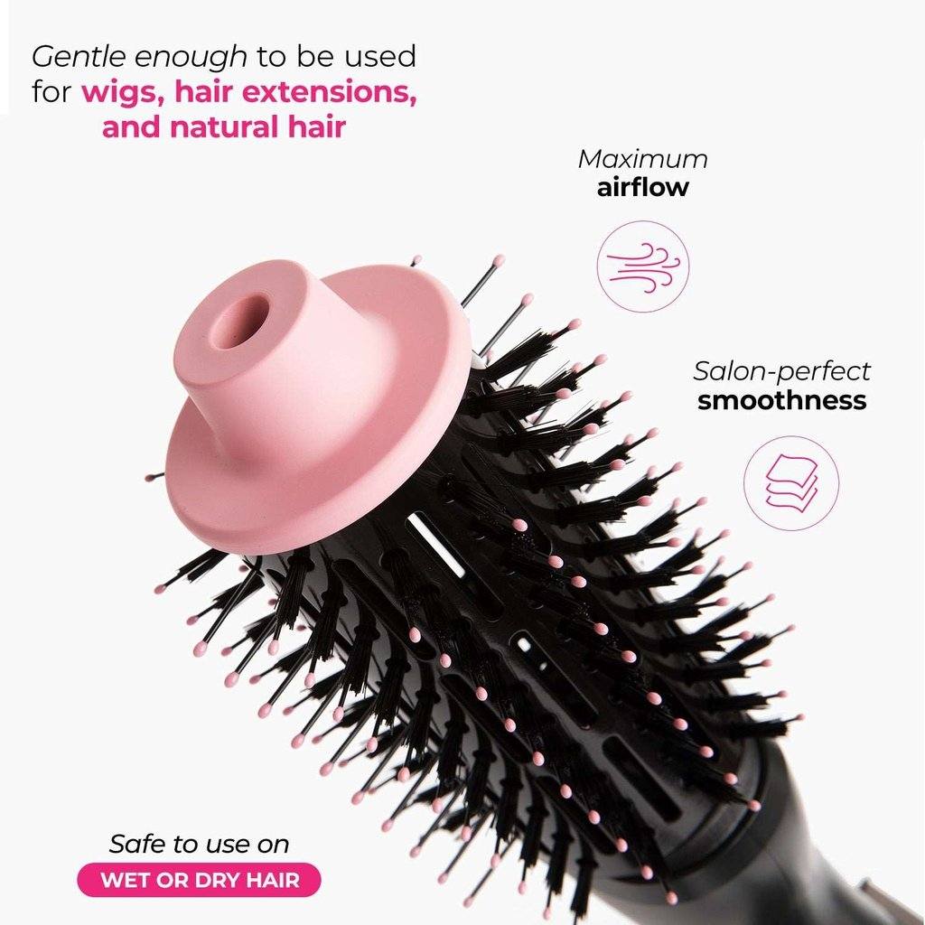 Blow-drying Made Easy: Combine the hot air of a hairdryer with the structure of a round brush for a smooth, shiny blowout with tons of volume in one quick, simple step; Perfect to style wigs for a finishing touch, or on your own natural hair!