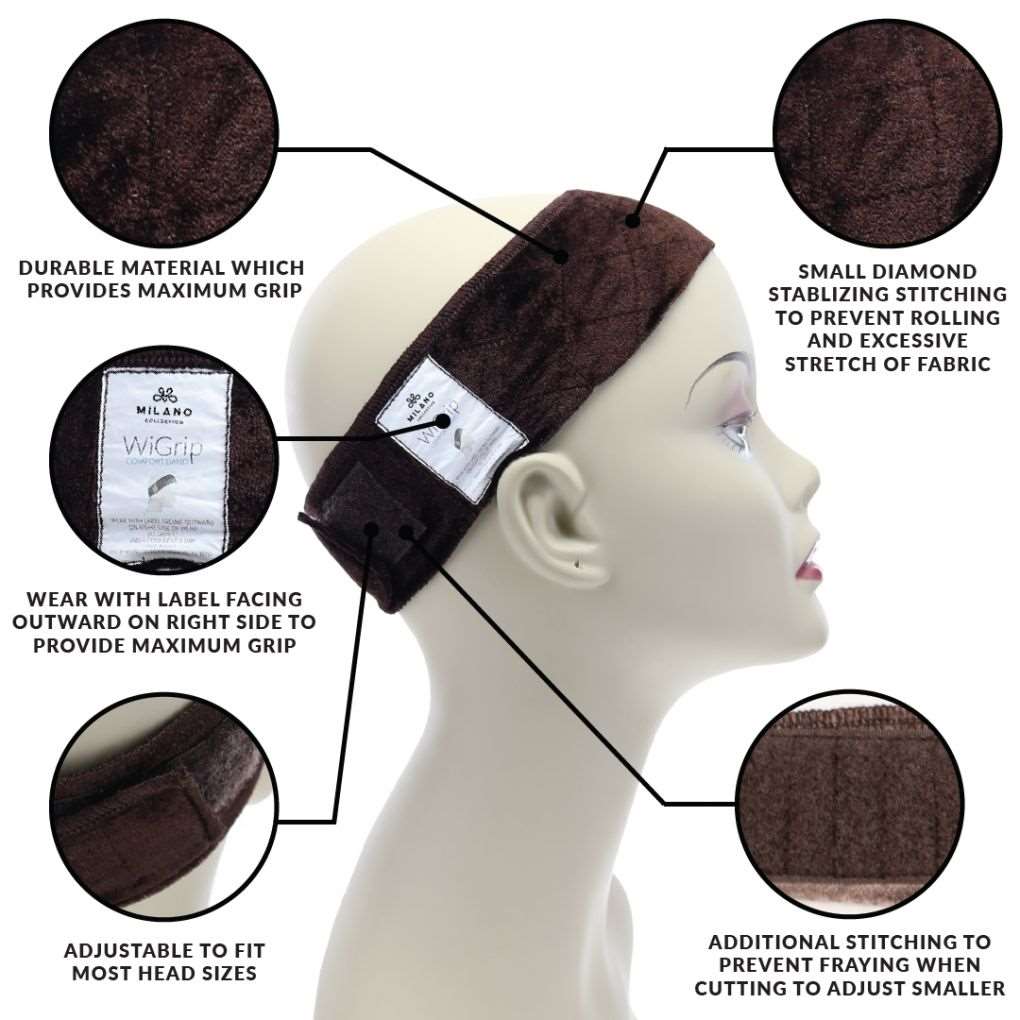 Best selling, adjustable brown wig band that grips your wig providing no-slip all-day security and comfort.